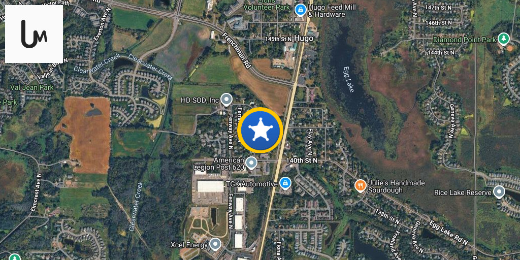 HUGO: 14xxx Finale Ave. N. – Deputies are searching for a driver who fled on foot after a pursuit ended in a crash near this address. Ramsey County Deputies initiated the pursuit for speed and lane violations while the vehicle was eastbound on County Road J.